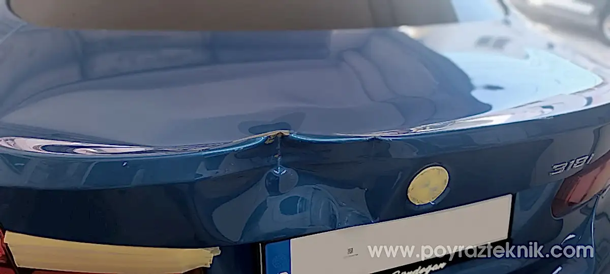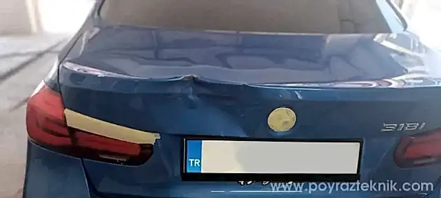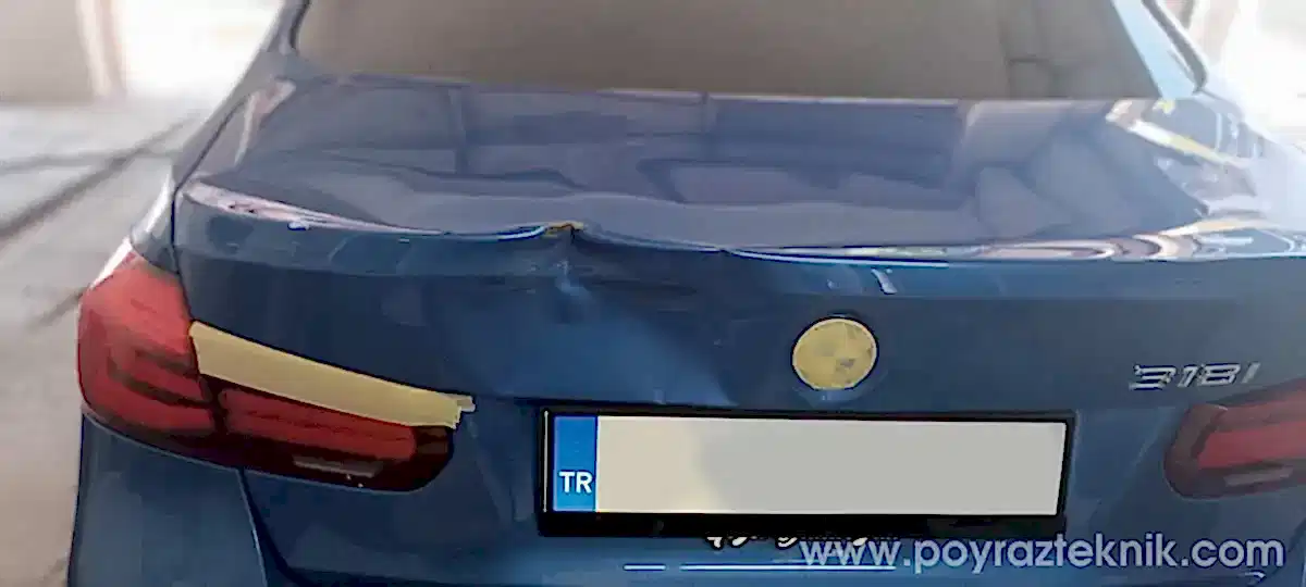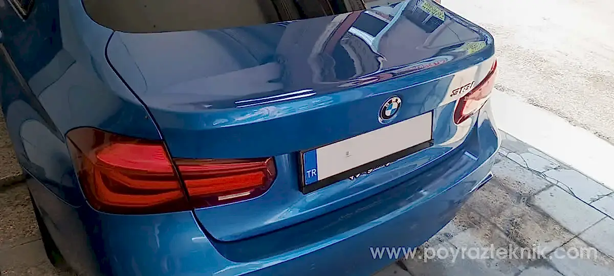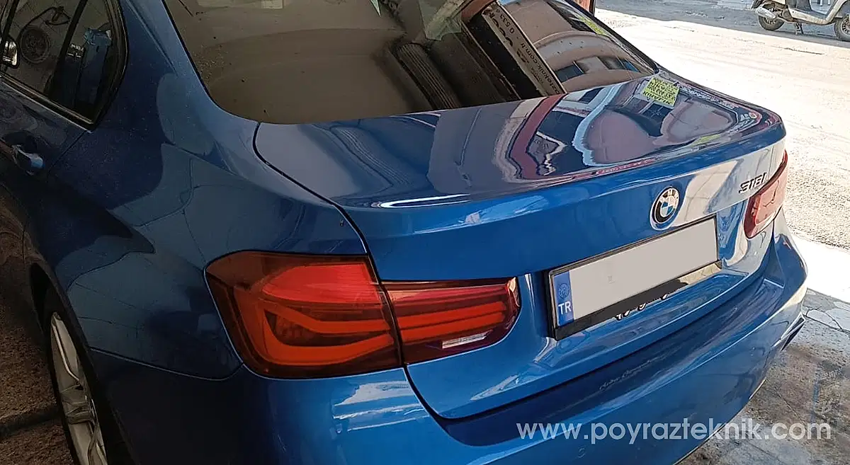İzmir, Poyraz Teknik, BMW F30, kaporta, bagaj kapağı göçük onarımı ve 3D renk teknolojisi ile lokal boya uygulaması